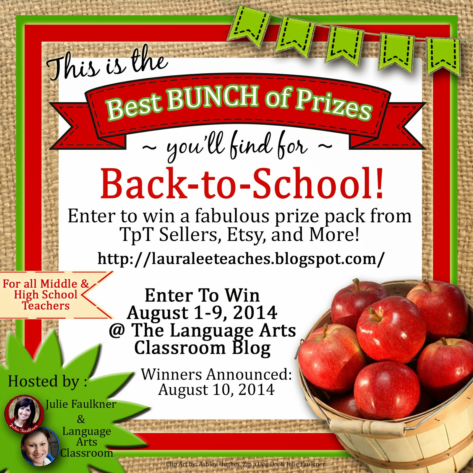 Click directly onto the pictures below to link to the blog where the giveaway is being hosted and enter! Tell all of your friends who teach secondary! You can enter any and all of the giveaways! Best of luck!